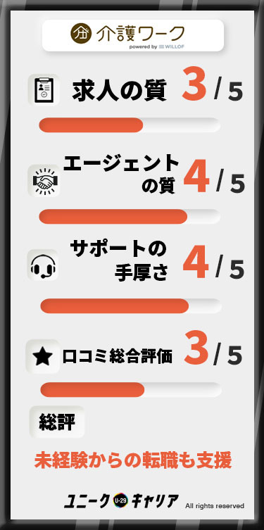 「介護ワーカー」は、介護士転職を目指すなら忘れずに登録しておきたい介護士転職エージェントだ。